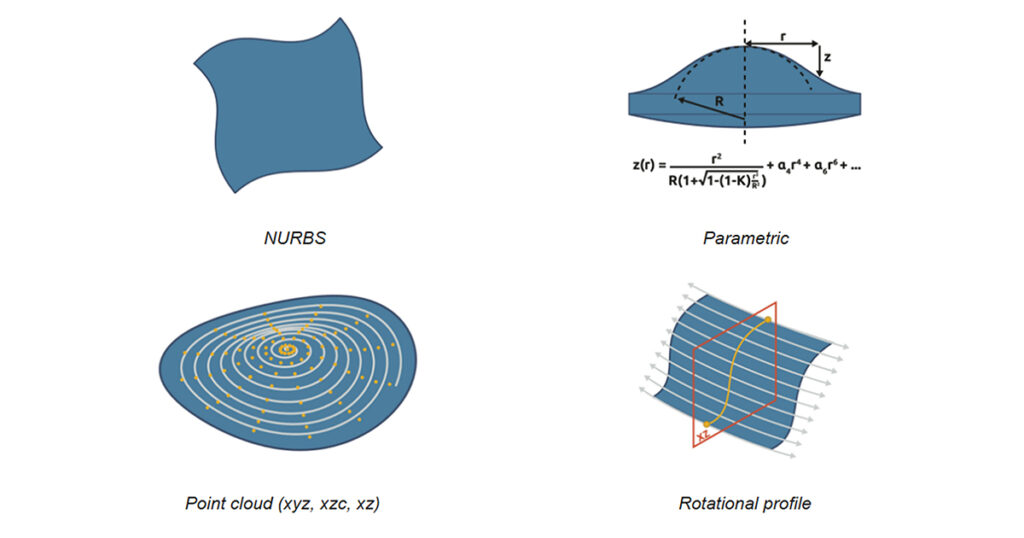 The ModuleWorks Optics package for ultra-precision machining works with diverse types of surface forms including solid BREP, NURBS, parametric surfaces, and point cloud data. This generates more accurate toolpaths without relying on mesh approximations. Integrating the ModuleWorks parametric surface library enhances OEM solutions with a wide range of pre-defined formulas: Flat, Sphere, A sphere, Torus, Radial Polynomial, XY Polynomial, Zernike Polynomial, Sine and Revolved Curve as well as various parametric surface operations: Translation, Tilt, Rotate, Trim, Combine, Multi-Surface Grid and Diffractive.