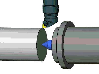 | The measuring functionality to measure the distance between points has been extended and can now be used between machine components. Tailstock is a new type of object available in the machine definition for simulation. Tailstocks are mostly used to center a rotary part on a lathe to avoid bending and vibrations while machining. The entire tailstock can be moved along a linear axis until it touches a stock or workpiece that is clamped on the machine. The simulation shows the complete range of the stock‘s functionality. | Tailstock |