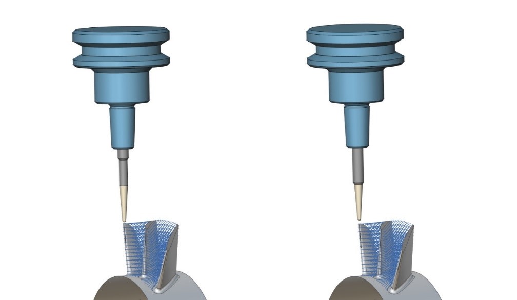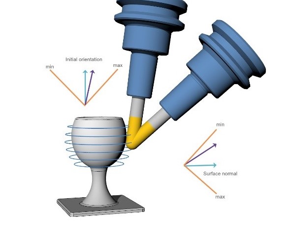 It is not always possible to create a collision-free lead for the machining process. The new automatic tilting feature uses an intelligent algorithm to automatically tilt the tool to avoid the collisions, thereby improving the safety and efficiency of the machining process, particularly when working with complex tool shapes such as barrel mill cutters.
