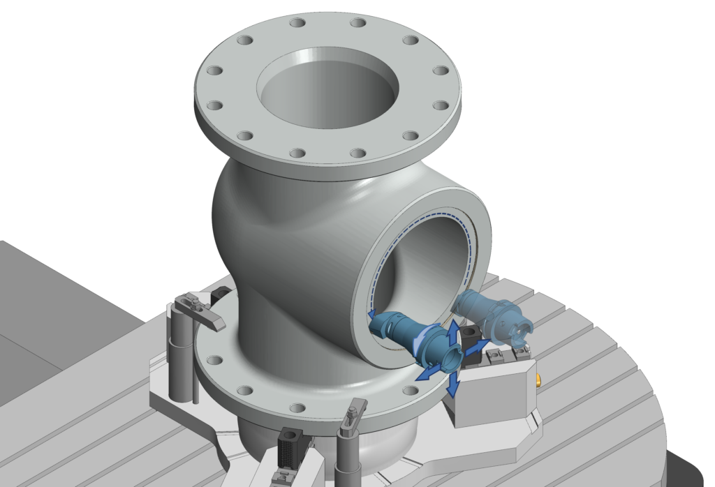 In interpolation turning, a cutting operation is performed on a stationary workpiece through simultaneous interpolation of multiple linear axes and the tool spindle position. This method is especially useful for large, non-symmetrical parts. A new option in the ModuleWorks CNC Simulation now enables interpolation turning operations to be simulated directly on the CNC control.