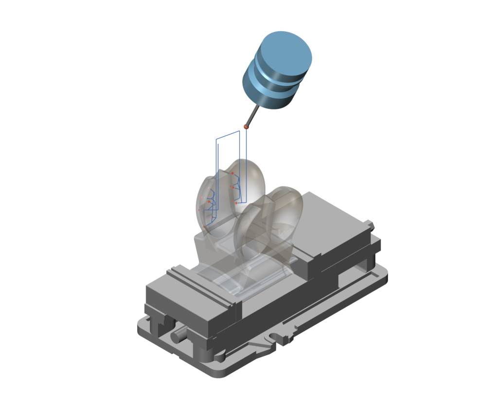 The first version of the new ModuleWorks Probing product offers 3D touch point probing. Users pick any points on a part. The system automatically recognizes the part geometry and calculates a probing toolpath with collision-free approach and retract motions. The toolpath can be exported as a canned cycle compatible with the native probing cycle on the CNC control.