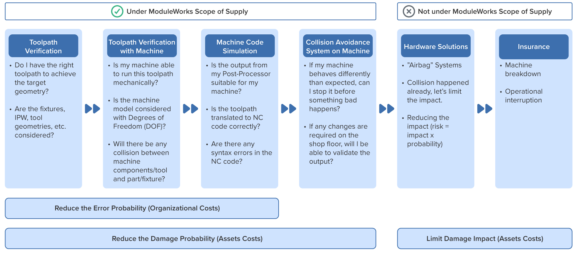 ModuleWorks Simulation portfolio provides full kinematic simulation with collision checking and material removal/additive simulation with scalable performance and usability. These technologies allow our partners to accurately simulate machining processes with machine movements and analyze them for errors and optimization potential in their software solutions.