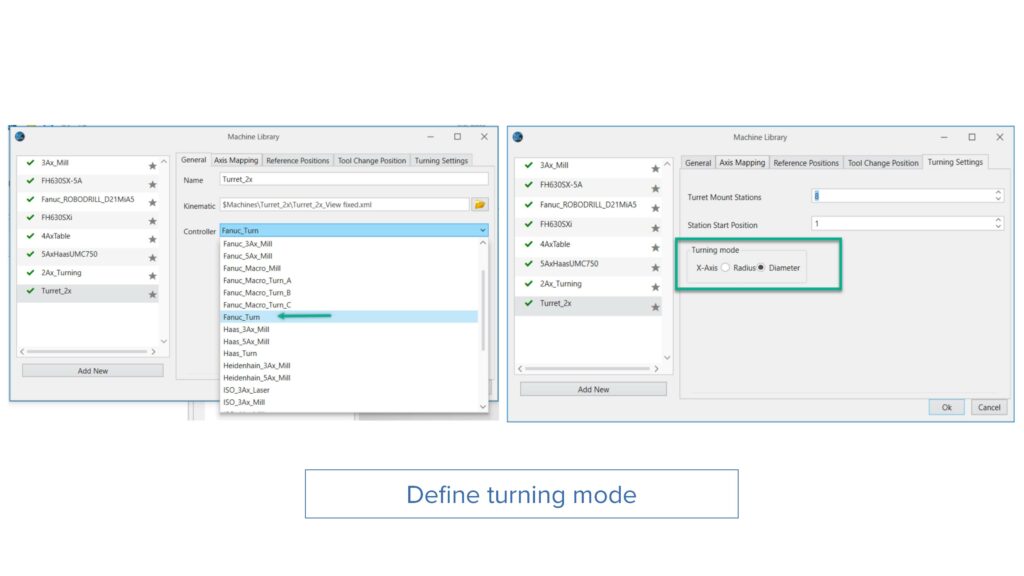 Benefits: With this enhancement, users can easily access the machine controller settings to switch between turning modes, eliminating multiple files and simplifying operation.