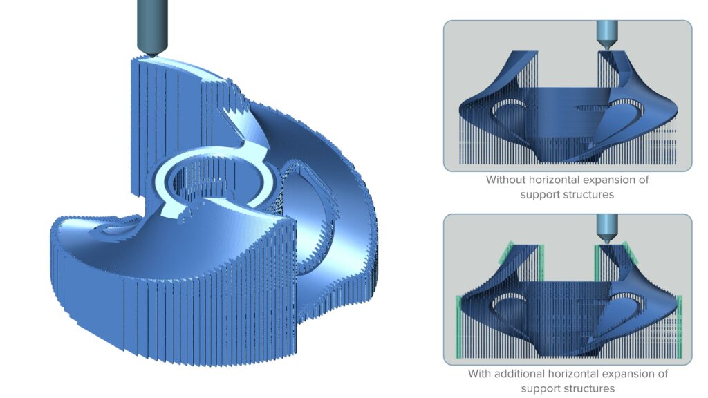 Benefits: Steep walls, extreme overhangs, and over-welded areas can be supported and printed stably without any issues.