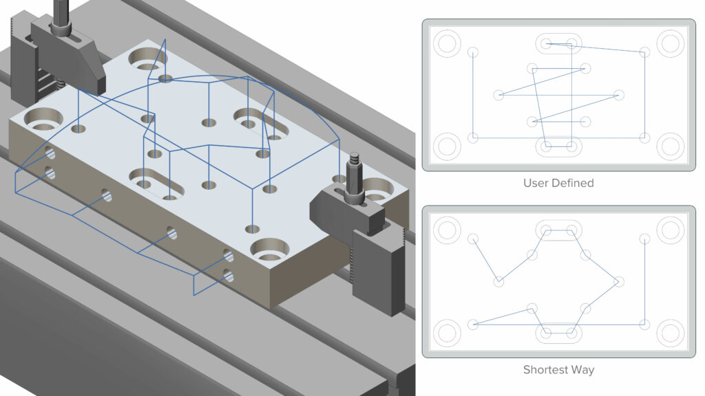 Benefits: This reduces air machining and therefore total machining time while using level based ordering for the roughing toolpath.
