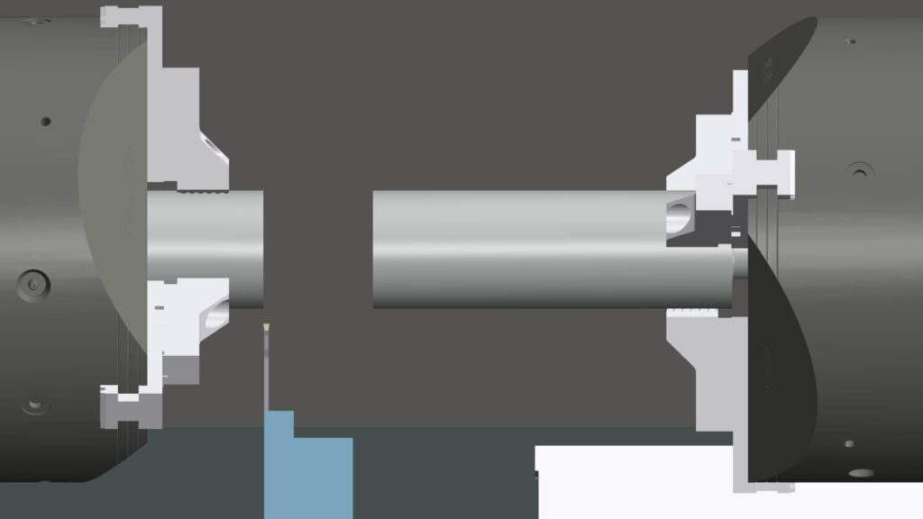 Solution: CNC Simulation now provides mechanisms for easily implementing stock-handling between multiple workpiece spindles, including manual or automatic cut-off detection.