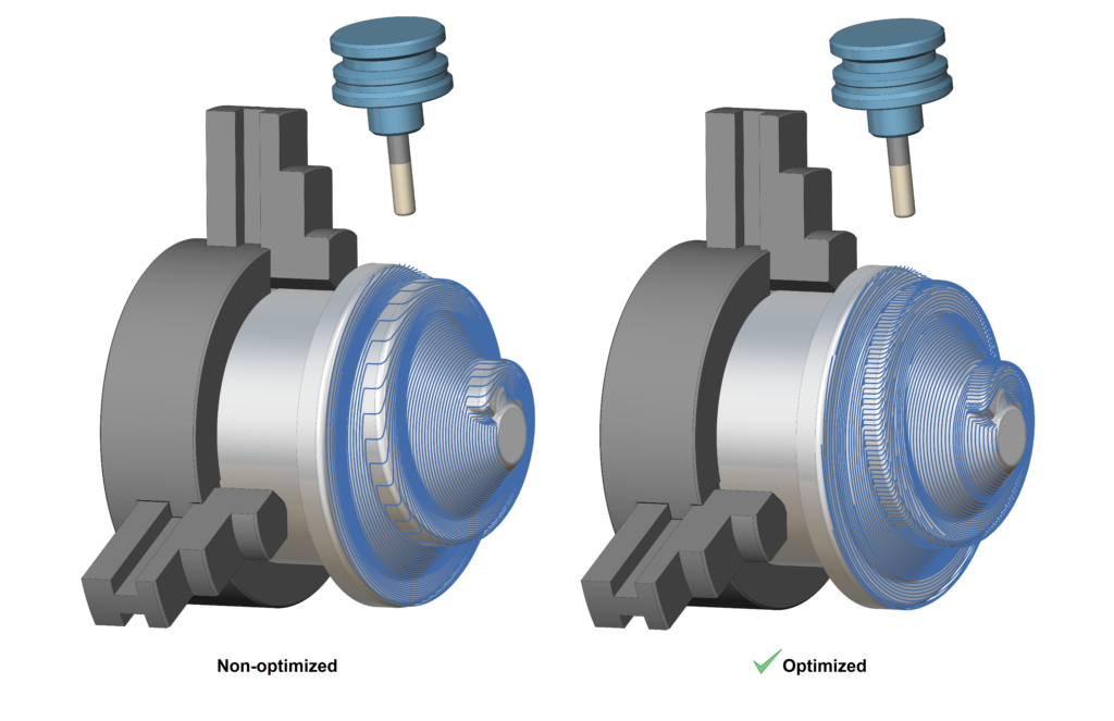 The new horizontal stepovers for rotary wall finishing users make it possible to add cuts in the shallow, cylindrical areas for a homogeneous finish across the workpiece, eliminating the need for consecutive finishing toolpaths.