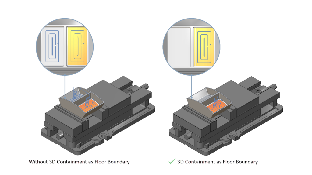To speed up the programing of roughing and finishing cycles, 3D containments are now generated automatically from the selected floor surface.